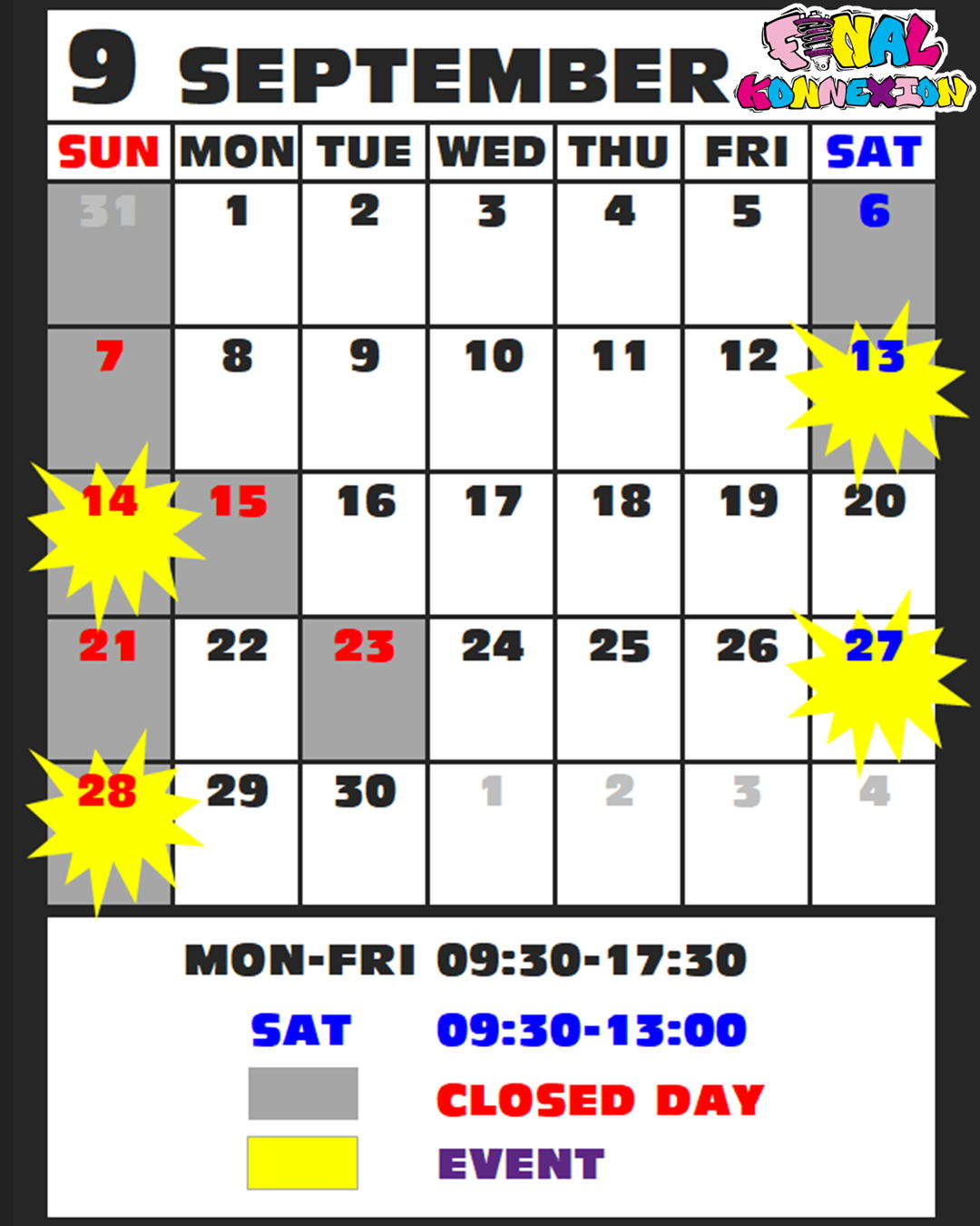 2025/09 ★☆営業日カレンダー 2025年9月☆★