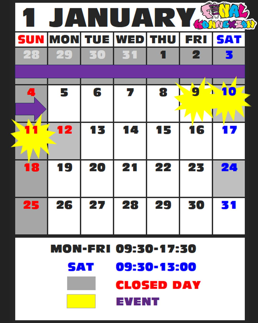 2025/12 ★☆営業日カレンダー 2026年1月☆★