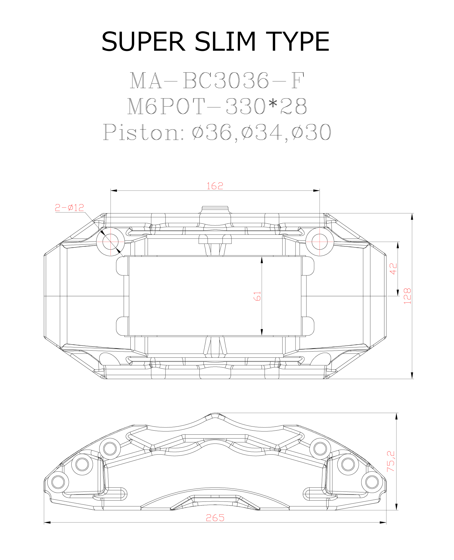 | 6POT SUPER SLIM TYPE | 330×28 | 17インチ以上 | 18インチ以上 | 265×75.2×128 SUPER SLIM TYPE | 36.34.30 | FKP516 | ¥378,000 (税込¥415,800) |